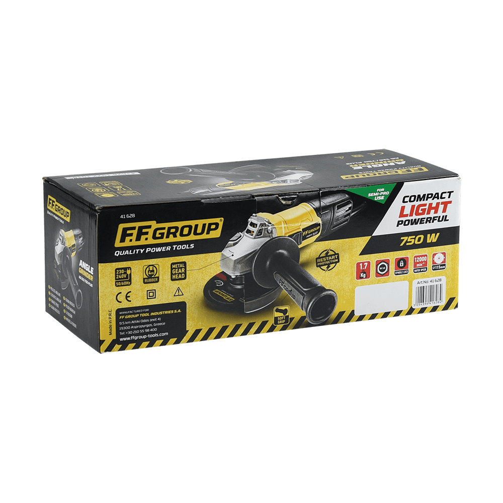 Γωνιακός τροχός AG 115/750 PLUS FF Group 41628. Περιλαμβάνεται προφυλακτήρας, γαντζόκλειδο, βοηθητική λαβή.
