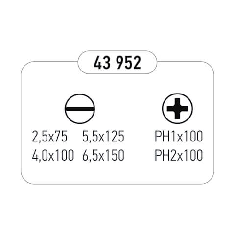Κατσαβίδια FF Group σετ 6 τεμαχίων Ίσια και PH. Το σετ περιλαμβάνει 4 ίσια κατσαβίδια, από 1 τεμάχιο 2.5 x 75 mm, 4 x 100 mm, 5.5 x 125 mm και 6.5 x 150 mm και 2 σταυρού, 1 PH1 x 100 mm και 1 PH2 x 100 mm.
