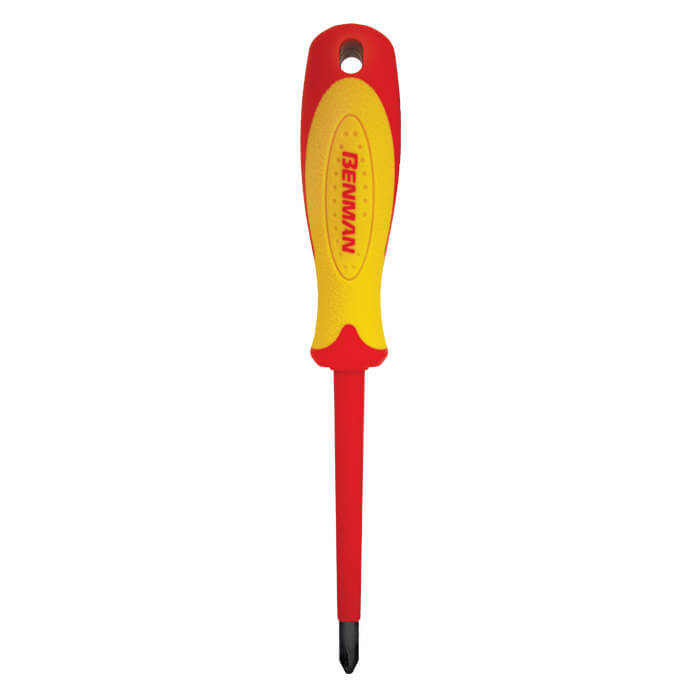 Κατσαβίδι σταυρού PH VDE 1000V Benman. Με μόνωση, λαβή από bi-material υλικό. Με τρύπες για κρέμασμα και εύκολη αναγνώριση μύτης.