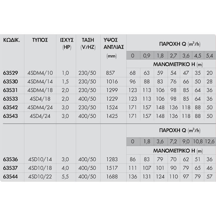 - Ελάχιστη διάμετρος πηγαδιού 4".