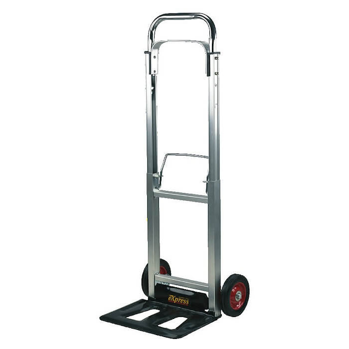 Καρότσι μεταφοράς αλουμινίου Express 631415. Πτυσσόμενο, ικανότητα 100 kg. Τροχοί συμπαγείς Ø150 mm. Διαστάσεις διπλωμένο: ύψος 70 cm, βάθος 20 cm.
