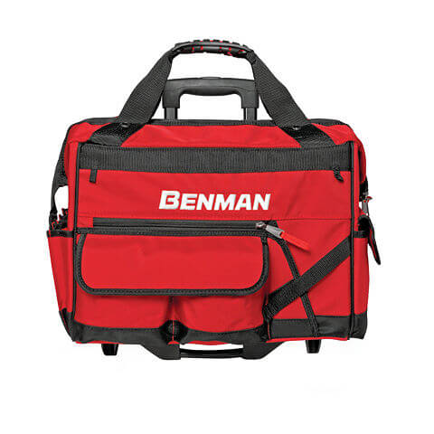 Εργαλειοθήκη - Τσάντα τροχήλατη Benman κατασκευασμένη από ενισχυμένο ύφασμα 1680D και ενισχυμένες ραφές για αντοχή στη φθορά από τα εργαλεία.