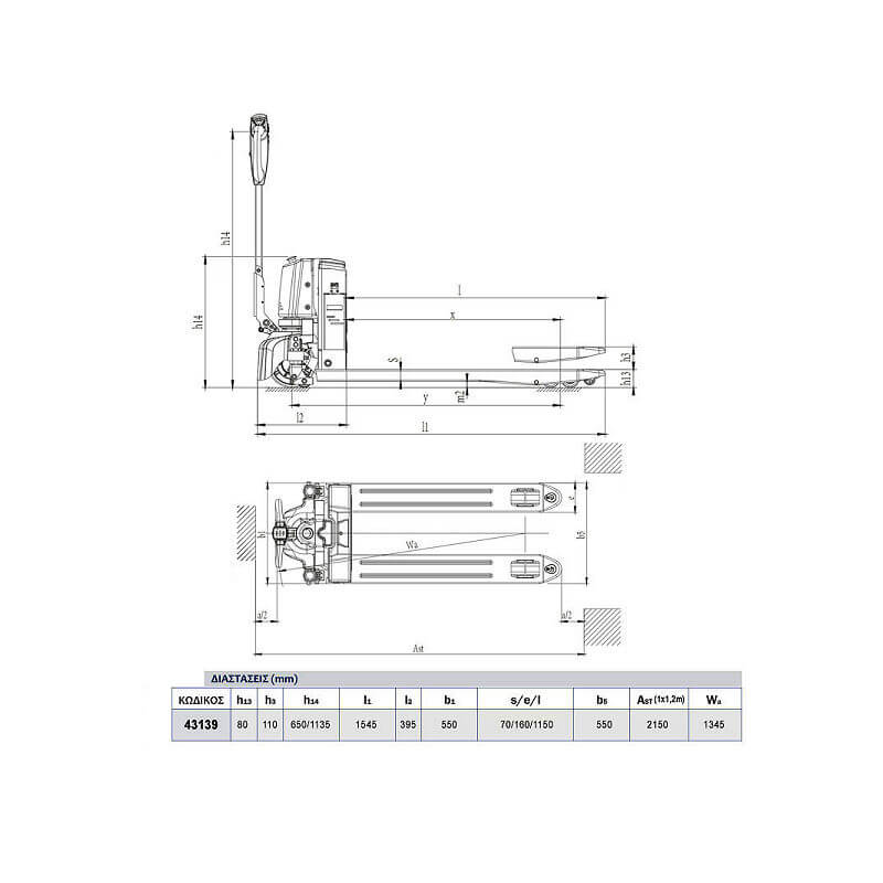 - Διαστάσεις πιρουνιών: 1.150 x 550 mm (για ευρωπαλέτες).