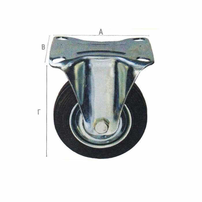 Διάμετρος ρόδας Ø200 mm, Α = 13 cm, Β = 9.6 cm, Γ = 23.5 cm. Αντοχή 185 kg ανά ρόδα.