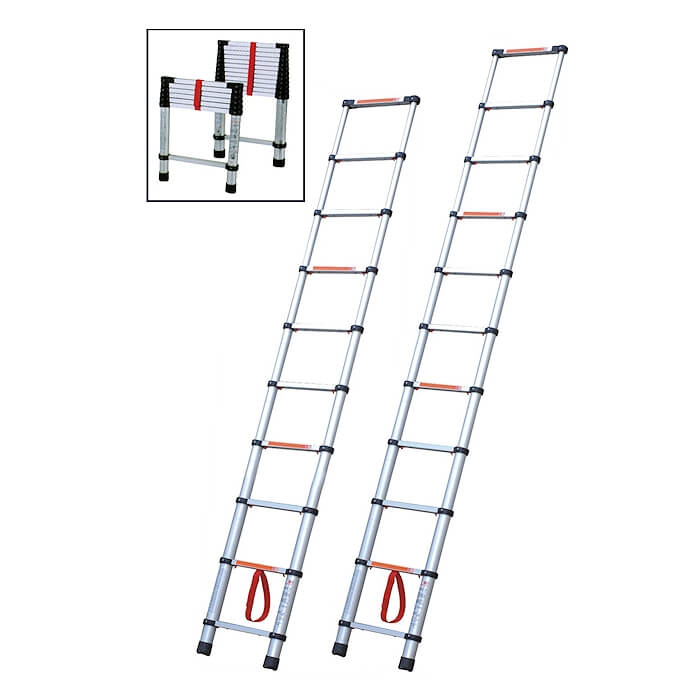 Πτυσσόμενη, τηλεσκοπική, με 9 σκαλιά.