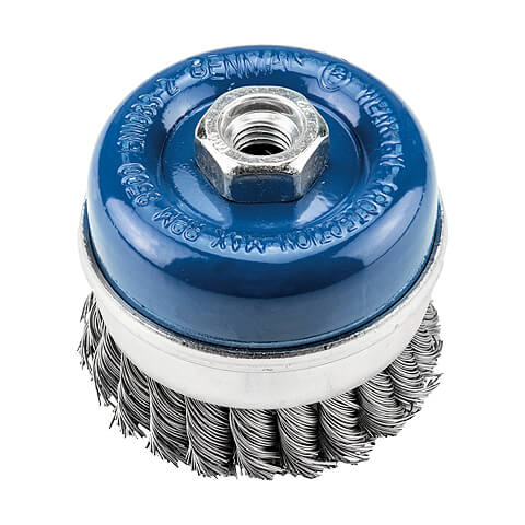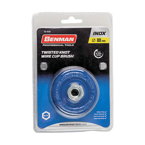 Συρματόβουρτσες καμπάνα Benman κοτσίδα Inox με πάσσο Μ14, ιδανικές για αφαίρεση γρεζιών, σκουριάς, βαφής και για φινίρισμα επιφανειών.