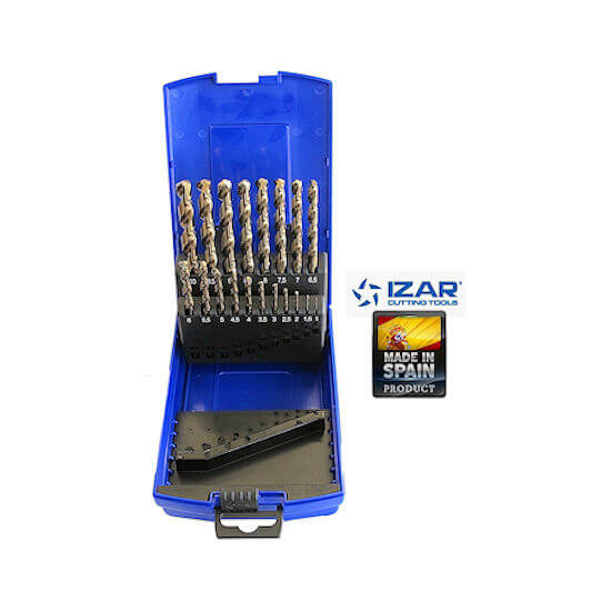Σετ τρυπάνια κοβαλτίου του Ισπανικού οίκου Izar με 5% κοβάλτιο, κατάλληλα για διάτρηση σε σίδερο, χάλυβα, αλουμίνιο, χαλκό, ορείχαλκο και ανοξείδωτο. Συνιστάται η χρήση τους σε συνδυασμό με εξειδικευμένα σπρέι διάτρησης - κοπής τα οποία βοηθούν στη ταχύτερη διάνοιξη οπών και αυξάνουν τη διάρκεια ζωής των τρυπανιών.