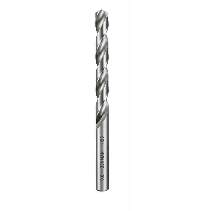 Τρυπάνι αέρος εξ' αφαιρέσεως HSS DIN 338 Benman. 100% πιο γρήγορη διέλευση, εξ' αιτίας της ακονισμένης μύτης 135°. Με ειδική πατενταρισμένη ακίδα-οδηγό για να μην γλυστράει. 40% μεγαλύτερη αντοχή από τα κοινά τρυπάνια. Κατασκευασμένο από υψηλής ποιότητας ταχυχάλυβα HSS. Γερμανίας.