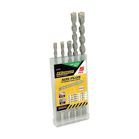 Τρυπάνια SDS PLUS FF Group σετ 5 τεμαχίων. Περιέχει: 2 τρυπάνια 6 x 160, 1 τρυπάνι 8 x 160, 1 τρυπάνι 10 x 210, 1 τρυπάνι 12 x 210. Κατάλληλα για μπετόν και τούβλο.