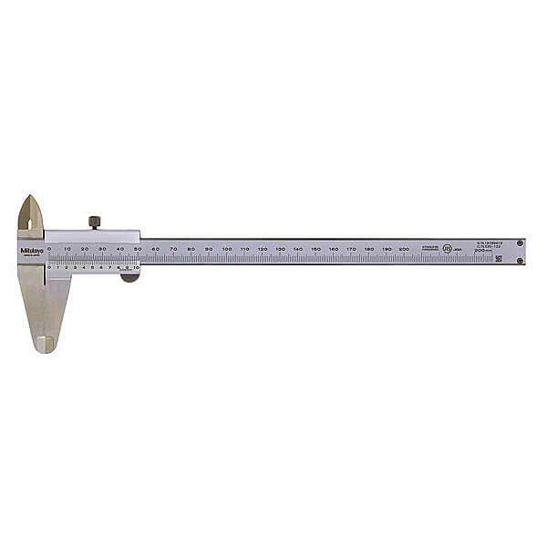 Μηχανικό παχύμετρο 200 mm Mitutoyo 530-123, made in Japan. Απλό παχύμετρο εξαιρετικής ποιότητας του Ιαπωνικού οίκου Mitutoyo με ανυψωμένες συρόμενες επιφάνειες. Προσφέρει υψηλή αναγνωσιμότητα χάρη στο φινίρισμα από σατέν χρώμιο της κύριας κλίμακας και της κλίμακας του βερνιέρου.