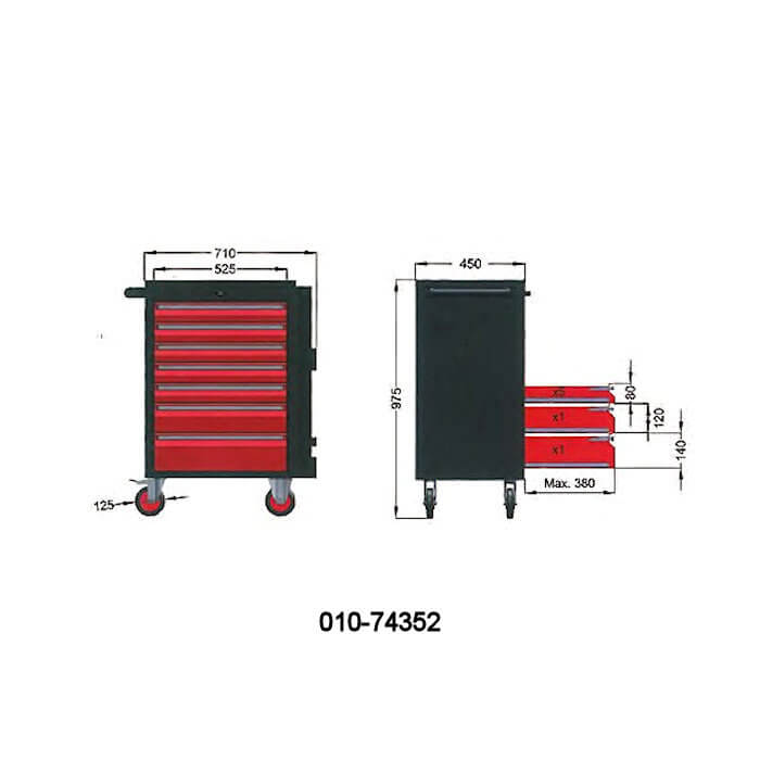 Εργαλειοφορέας Benman 74352. Διαστάσεις 975 mm x 710 mm x 450 mm.