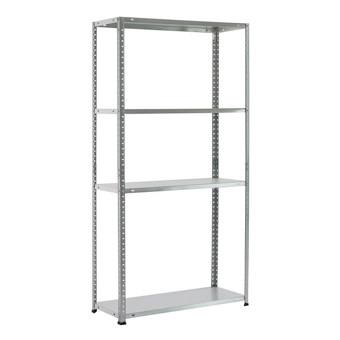 Μεταλλική ραφιέρα Bülle 610413. Γαλβανιζέ, με 4 ράφια και μέγιστο βάρος (ομοιόμορφα κατανεμημένο) 30 kg/ράφι. Διαστάσεις: 75 x 30 x 150 cm. Διαστάσεις συσκευασίας: 76 x 30.5 x 2.5 cm. Μικτό βάρος: 4.9 kg.