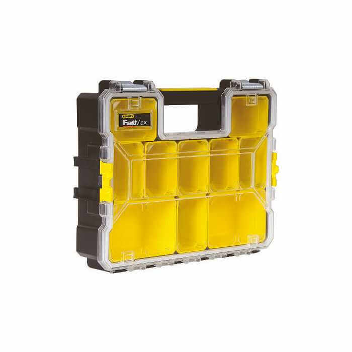 Ταμπακιέρα Stanley FatMax. Επαγγελματική ταμπακιέρα με βάθος. Αφαιρούμενοι δίσκοι και ταμπακιέρες για μικρά εξαρτήματα. Άθραυστο καπάκι, καθαρό και ανθεκτικό, με μοναδικό σχεδιασμό που κλειδώνει όλες τις ταμπακιέρες στη θέση τους. Λαβή επαγγελματικής χρήσης και κουμπώματα πλαστικά ή μεταλλικά για ανθεκτικότητα, ευκολία και άνεση στη χρήση. Αδιάβροχη. Διαστάσεις: 44.6 x 11.6 x 35.7 cm.